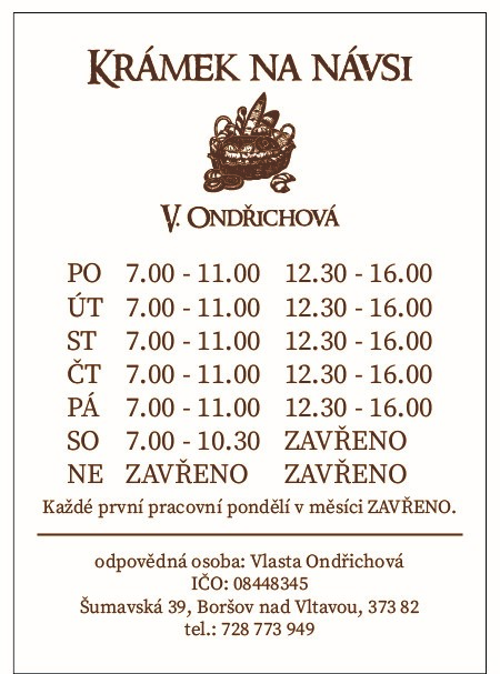 Upravená pracovní doba v krámku na návsi